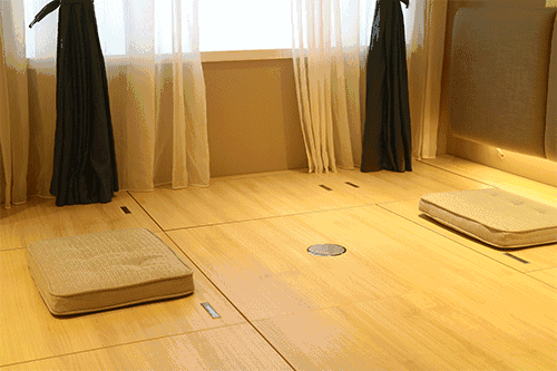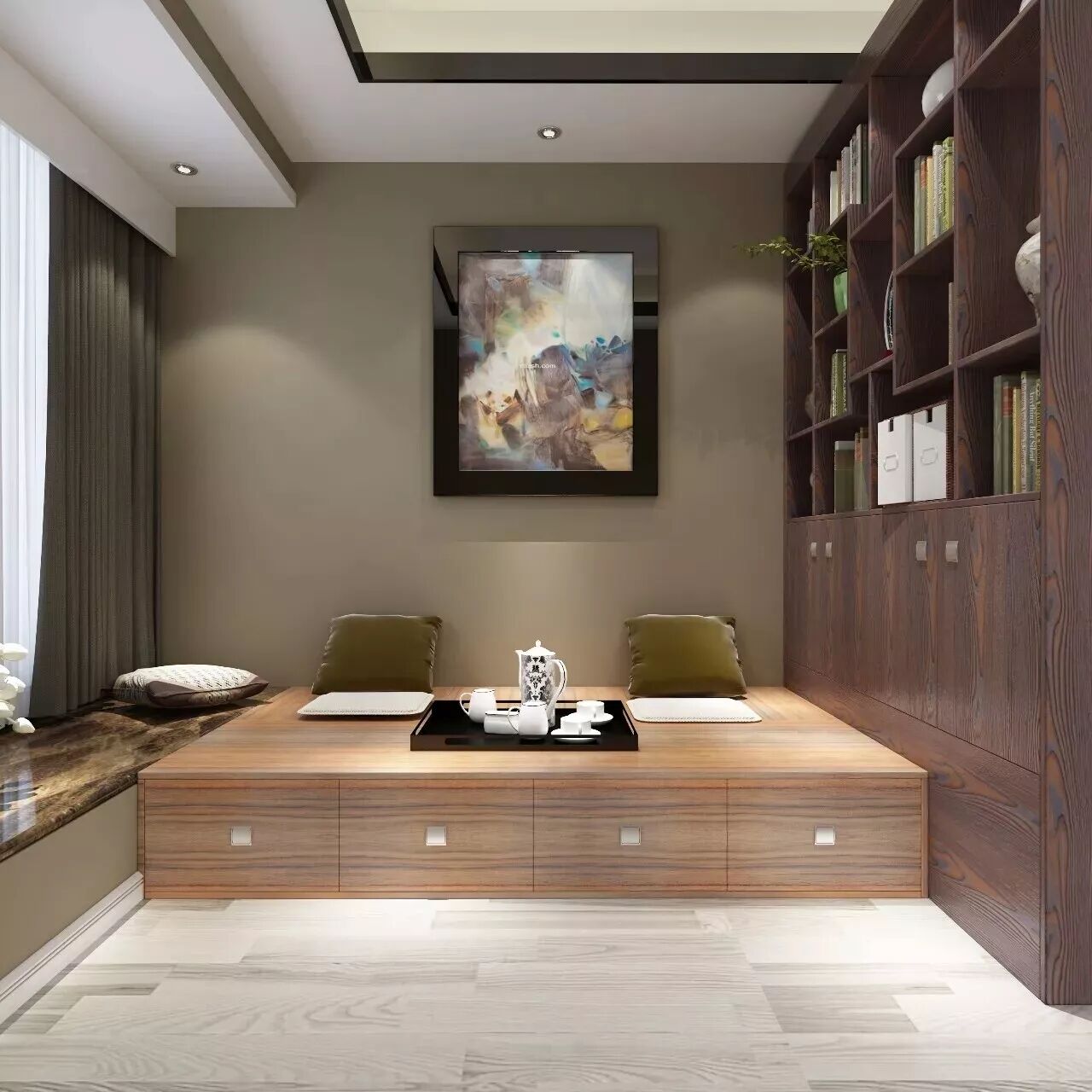 功能较齐全的大概便是自带升降桌的榻榻米了。升降桌分为电动或者气压,适合在午后沏上一杯茶,和三五好友聊聊天,也可以约上几个棋友博弈两局。带有升降台的榻榻米特别适合家中老人修身养性或日常解闷。