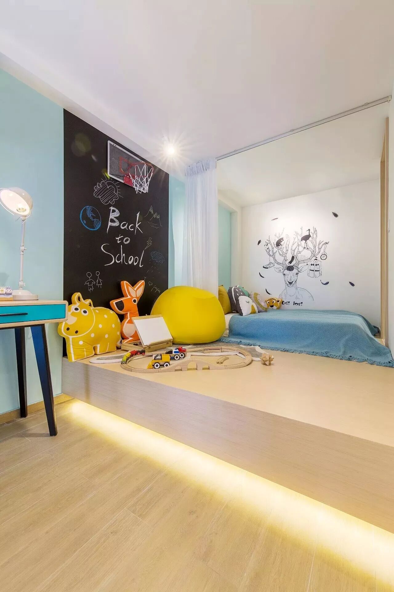 在儿童房设计一个榻榻米,不仅为家中孩童提供了足够的玩耍空间,同时还比较便于孩童身体的成长。