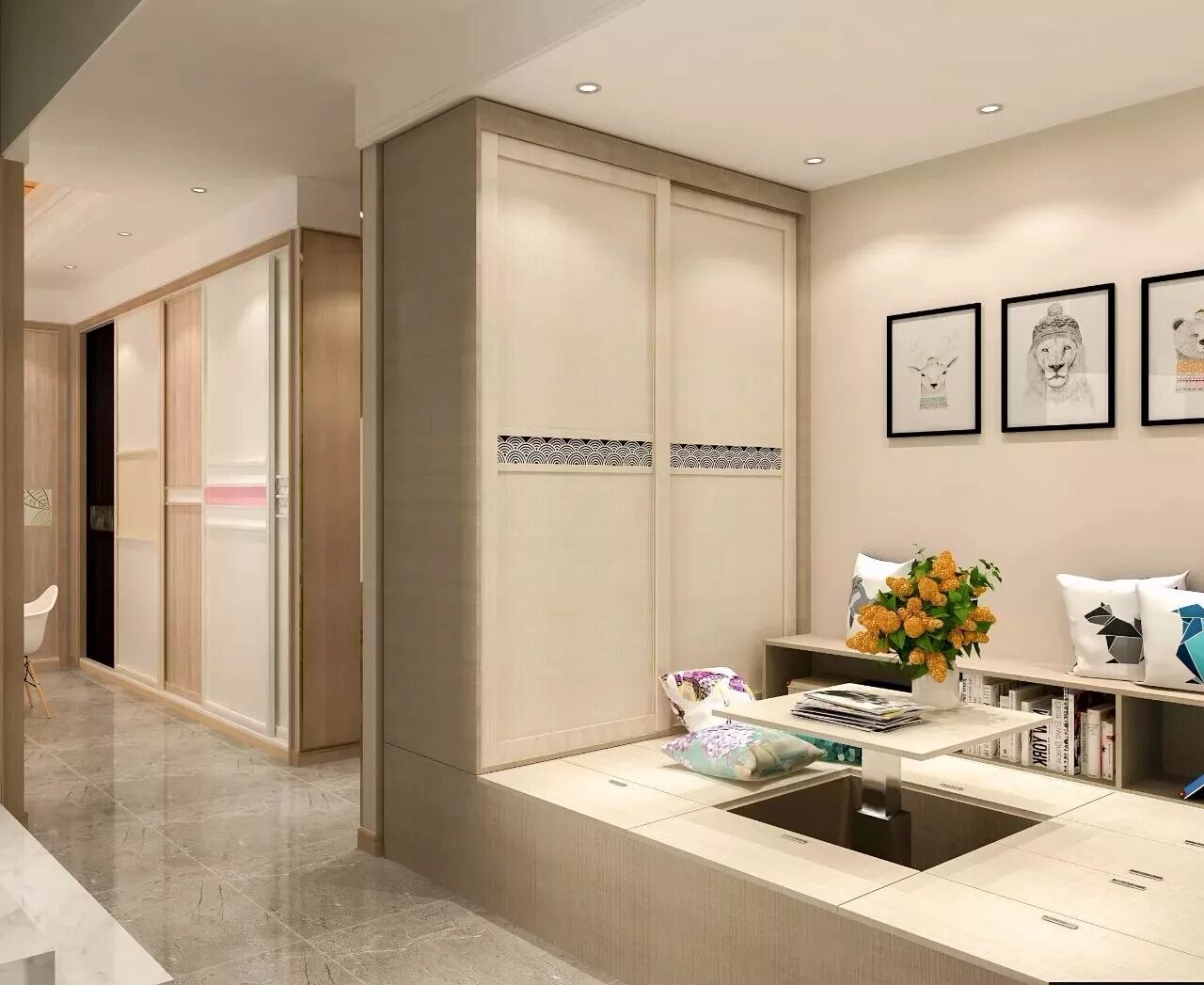 用榻榻米充当床对于小户型来说,是个不错的选择。卧室中的榻榻米,可在一旁设置几个储物柜,放置家中不常用的生活用品,这样便会让整个空间变得干净利索,明亮整洁。
