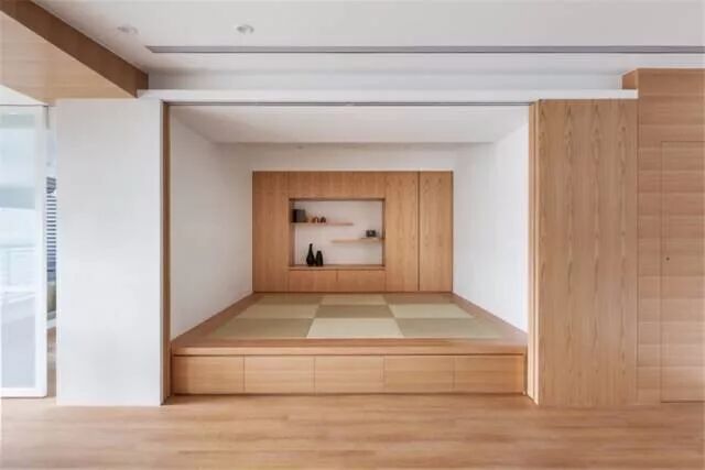 当然,榻榻米不只是小户型的较爱,大空间也迷上了它。大空间利用榻榻米,大面积的低矮床榻,使得空间具有独特别致的质感格调!